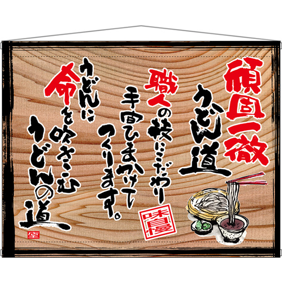 木製看板風タペストリー 頑固一徹うどん (白フチ)木看板 No.28006 [28006]