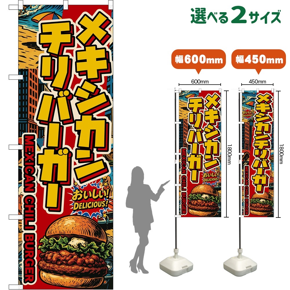 のぼり旗 メキシカンチリバーガー MEXICAN CHILI BURGER (アメリカン) [DN-0014・DNS-0014]