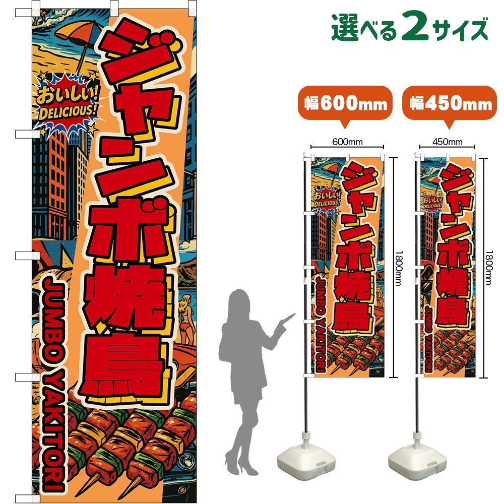 のぼり旗 ジャンボ焼鳥 JUMBO YAKITORI (赤文字・アメリカン) [DN-0059・DNS-0059]
