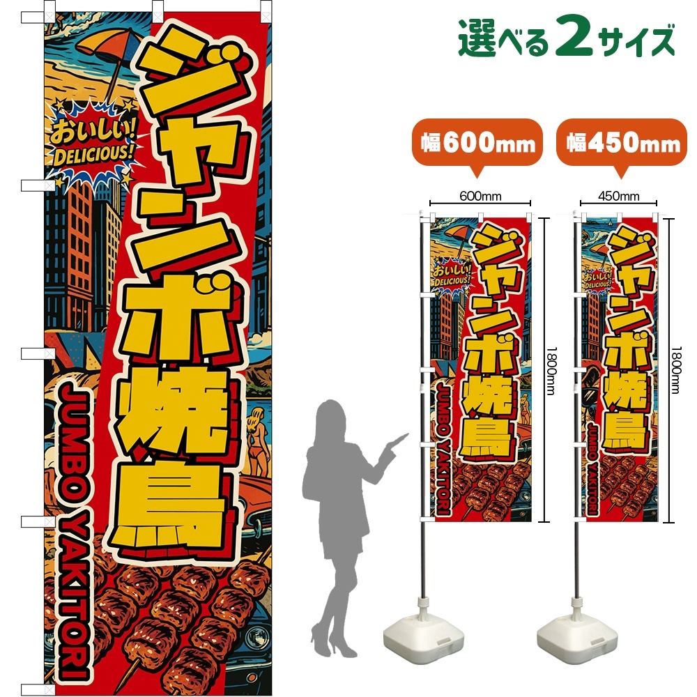 のぼり旗 ジャンボ焼鳥 JUMBO YAKITORI (黄文字・アメリカン)