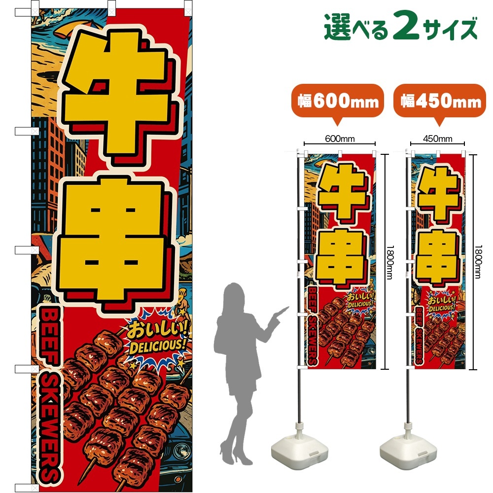 のぼり旗 牛串 BEEF SKEWERS (黄文字・アメリカン) [DN-0062・DNS-0062]