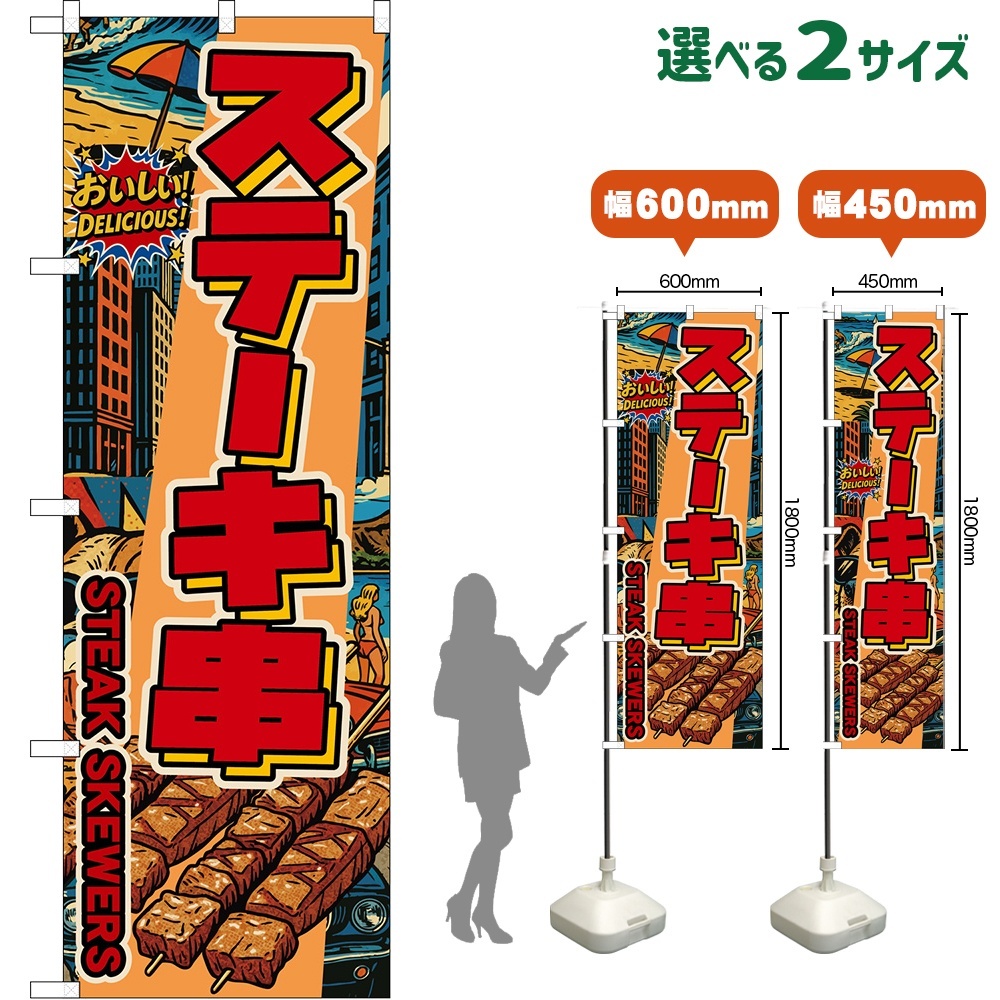 のぼり旗 ステーキ串 STEAK SKEWERS (赤文字・アメリカン)