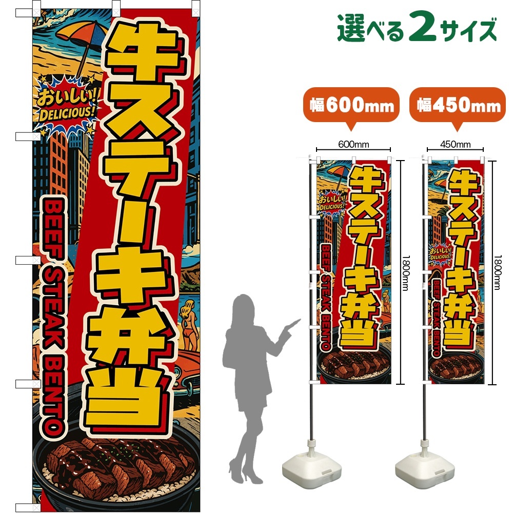 のぼり旗 牛ステーキ弁当 BEEF STEAK BENTO (黄文字・アメリカン)