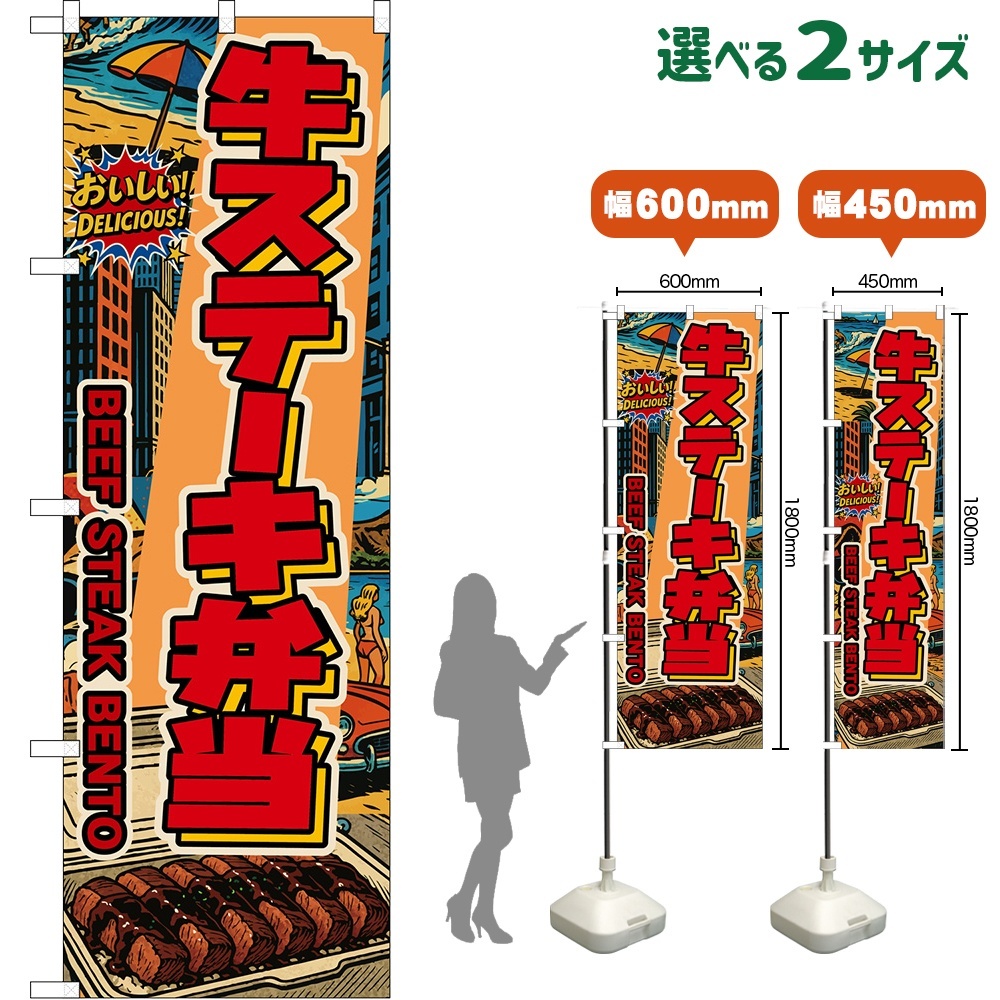 のぼり旗 牛ステーキ弁当 BEEF STEAK BENTO (赤文字・アメリカン) [DN-0094・DNS-0094]
