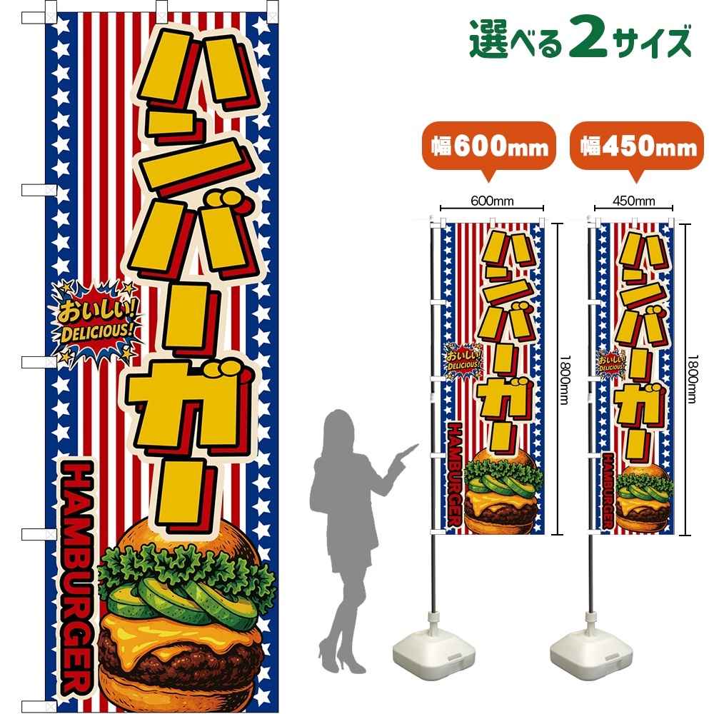 のぼり旗 ハンバーガー HAMBURGER (アボカド・星条旗風) [DN-0122・DNS-0122]