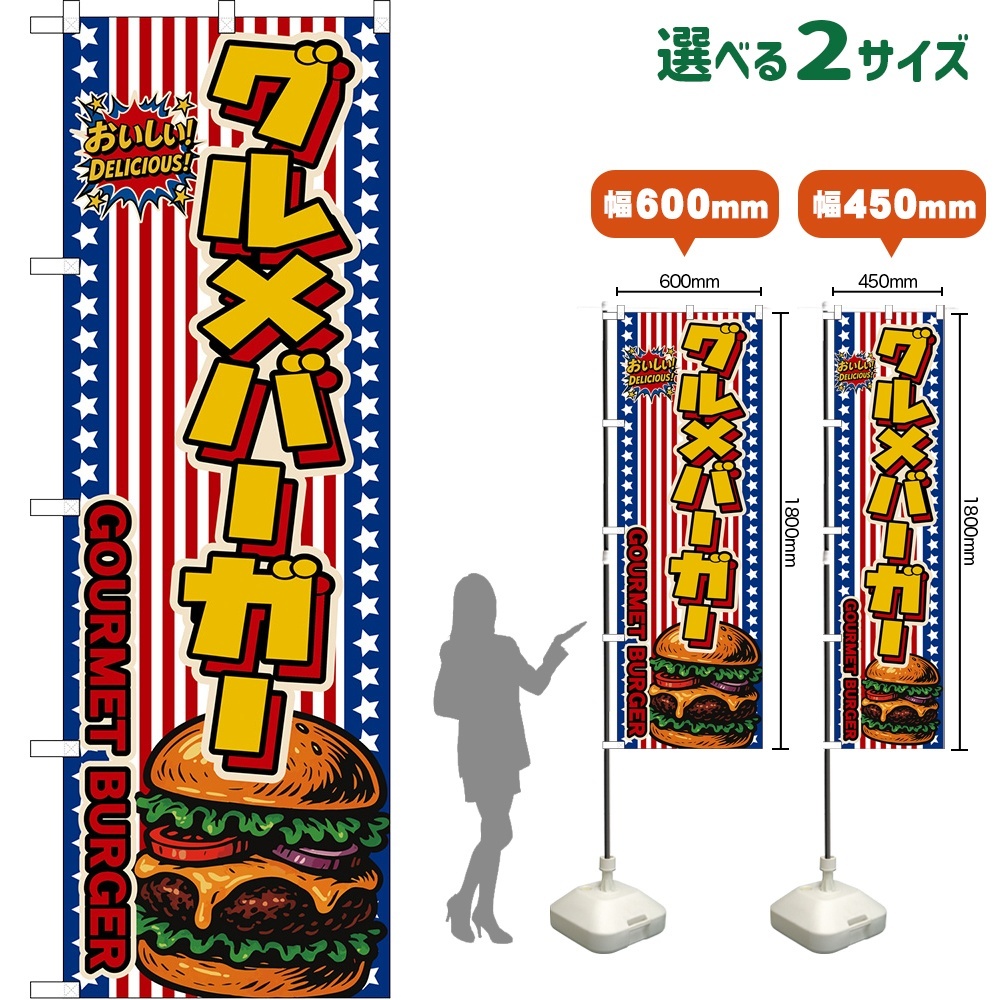 のぼり旗 グルメバーガー GOURMET BURGER (星条旗風) [DN-0123・DNS-0123]