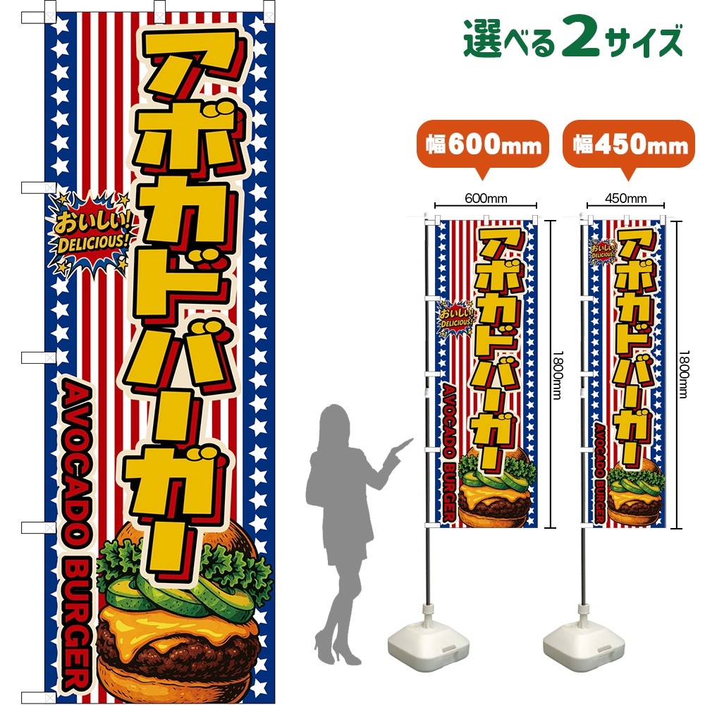 のぼり旗 アボカドバーガー AVOCADO BURGER (星条旗風) [DN-0126・DNS-0126]