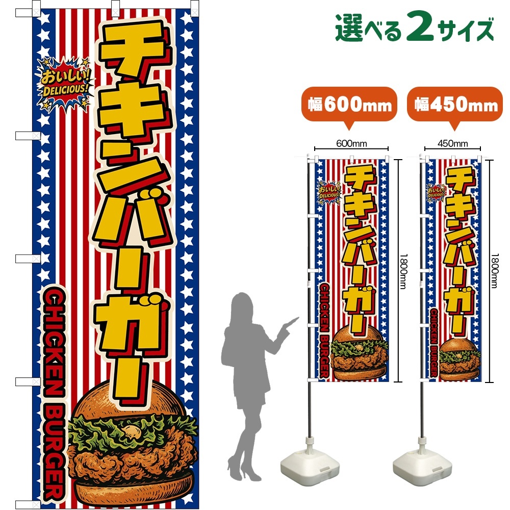 のぼり旗 チキンバーガー CHICKEN BURGER (星条旗風)