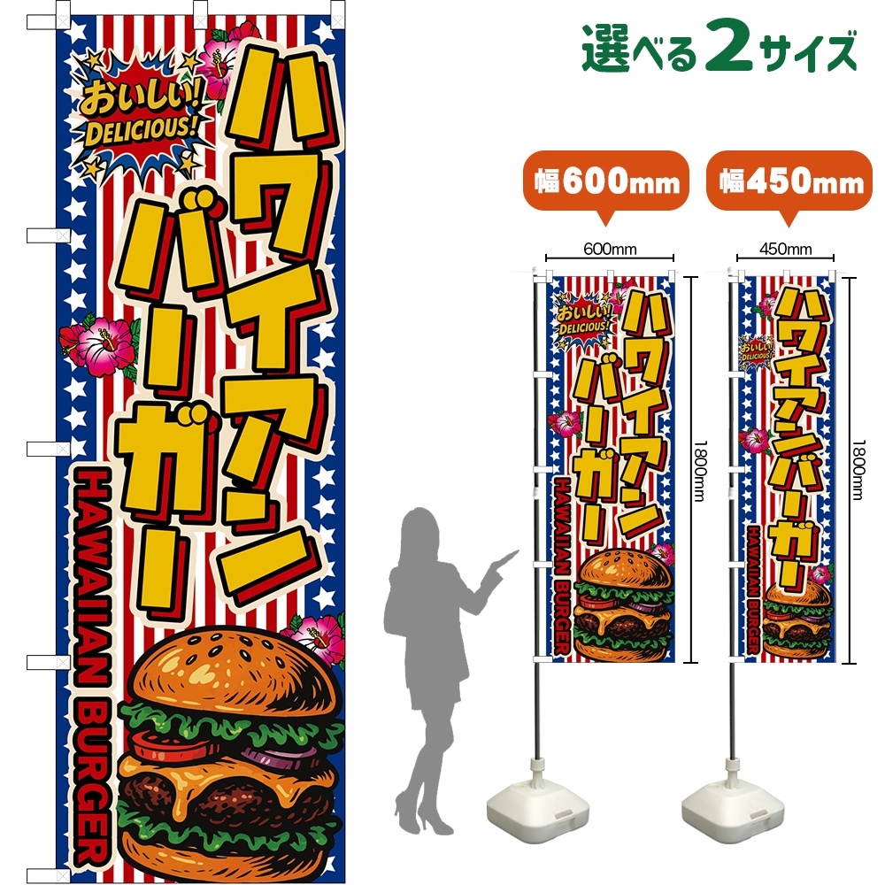 のぼり旗 ハワイアンバーガー HAWAIIAN BURGER (星条旗風) [DN-0130・DNS-0130]