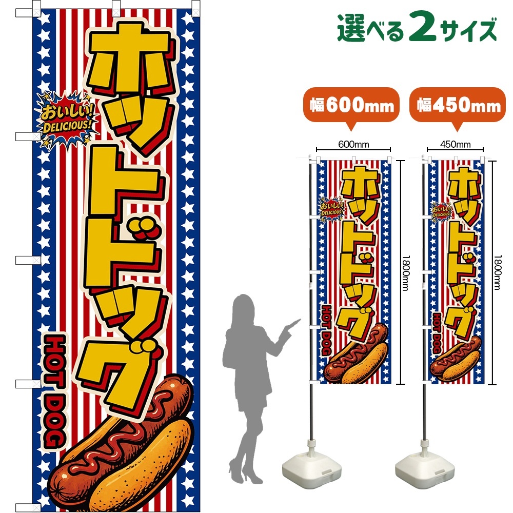 のぼり旗 ホットドッグ HOT DOG (星条旗風) [DN-0145・DNS-0145]
