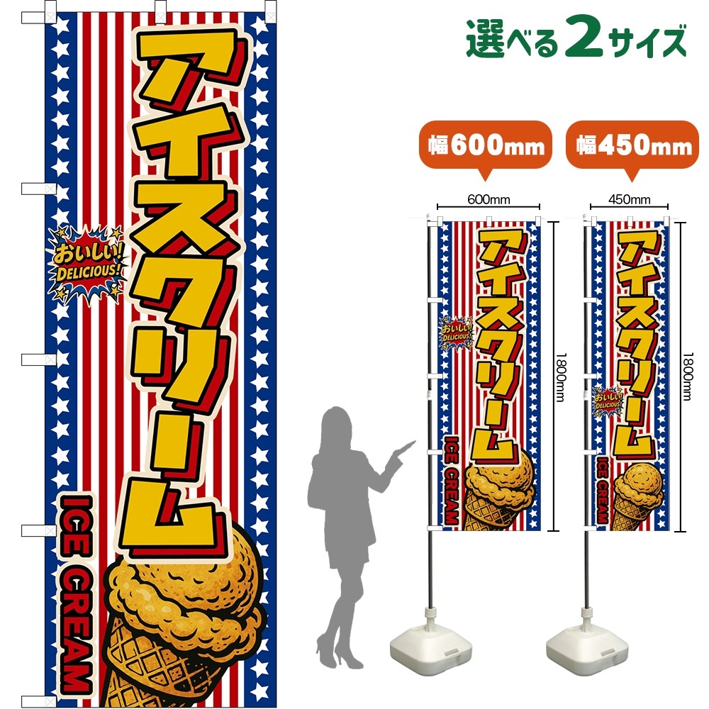 のぼり旗 アイスクリーム ICE CREAM (星条旗風)