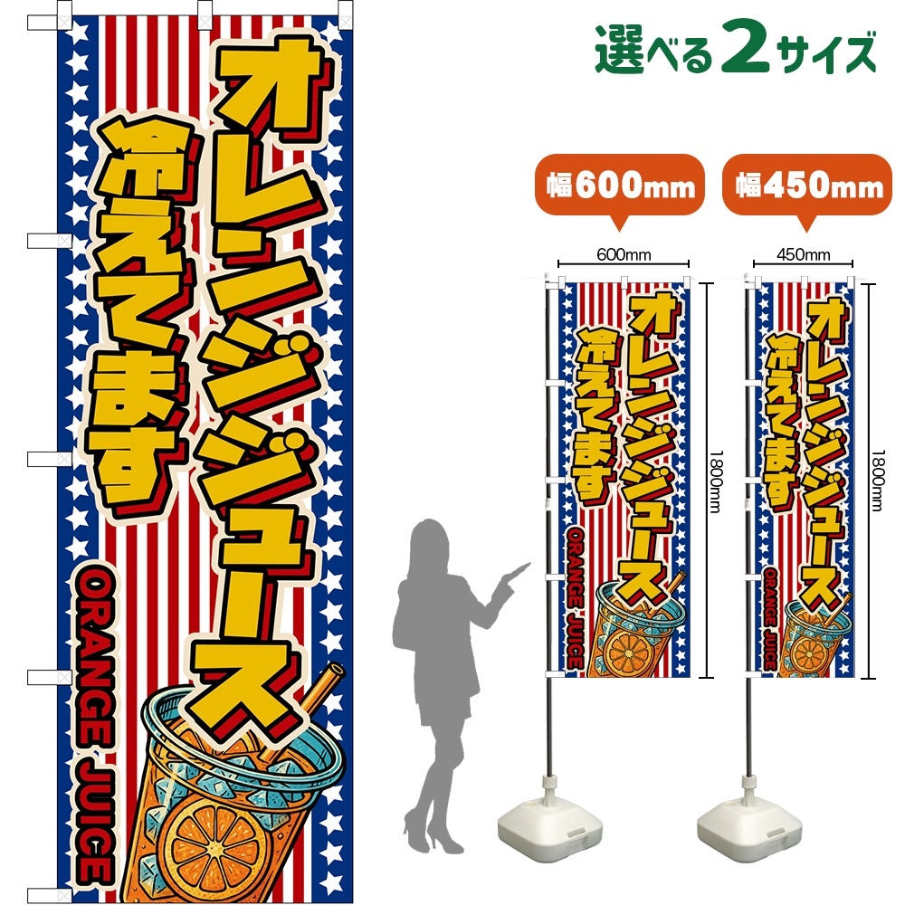 のぼり旗 オレンジジュース 冷えてます ORANGE JUICE (星条旗風) [DN-0194・DNS-0194]