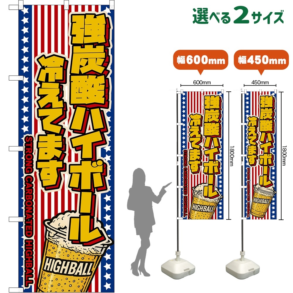 のぼり旗 強炭酸ハイボール 冷えてます STRONG CARBONATED HIGHBALL (カップ・星条旗風)
