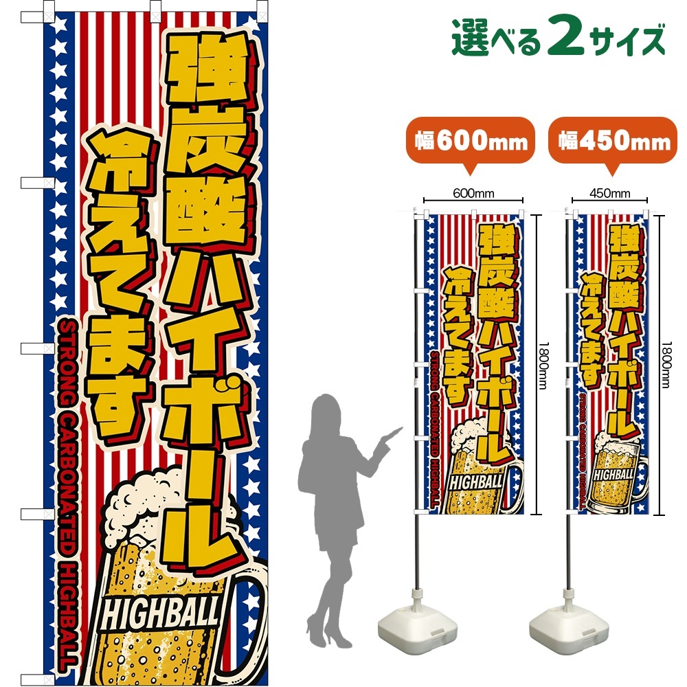のぼり旗 強炭酸ハイボール 冷えてます STRONG CARBONATED HIGHBALL (ジョッキ・星条旗風) [DN-0210・DNS-0210]