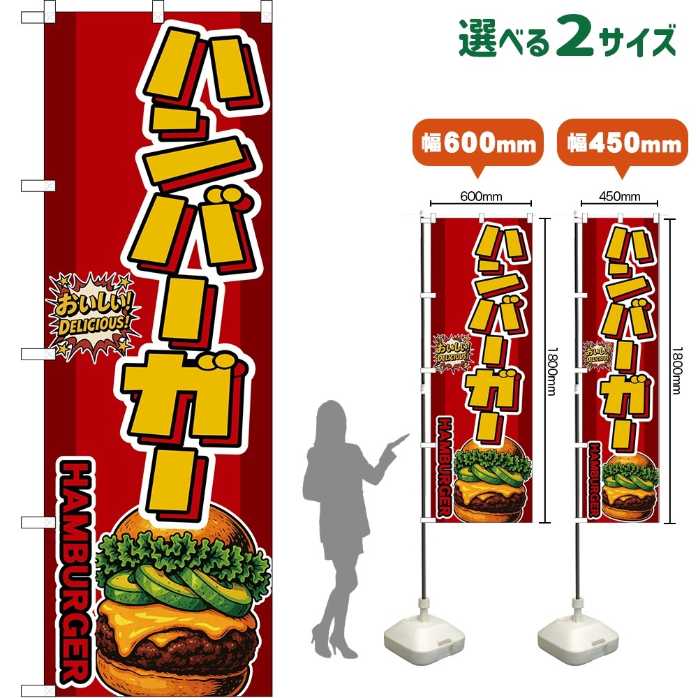 のぼり旗 ハンバーガー HAMBURGER (アボカド・赤) [DN-0214・DNS-0214]