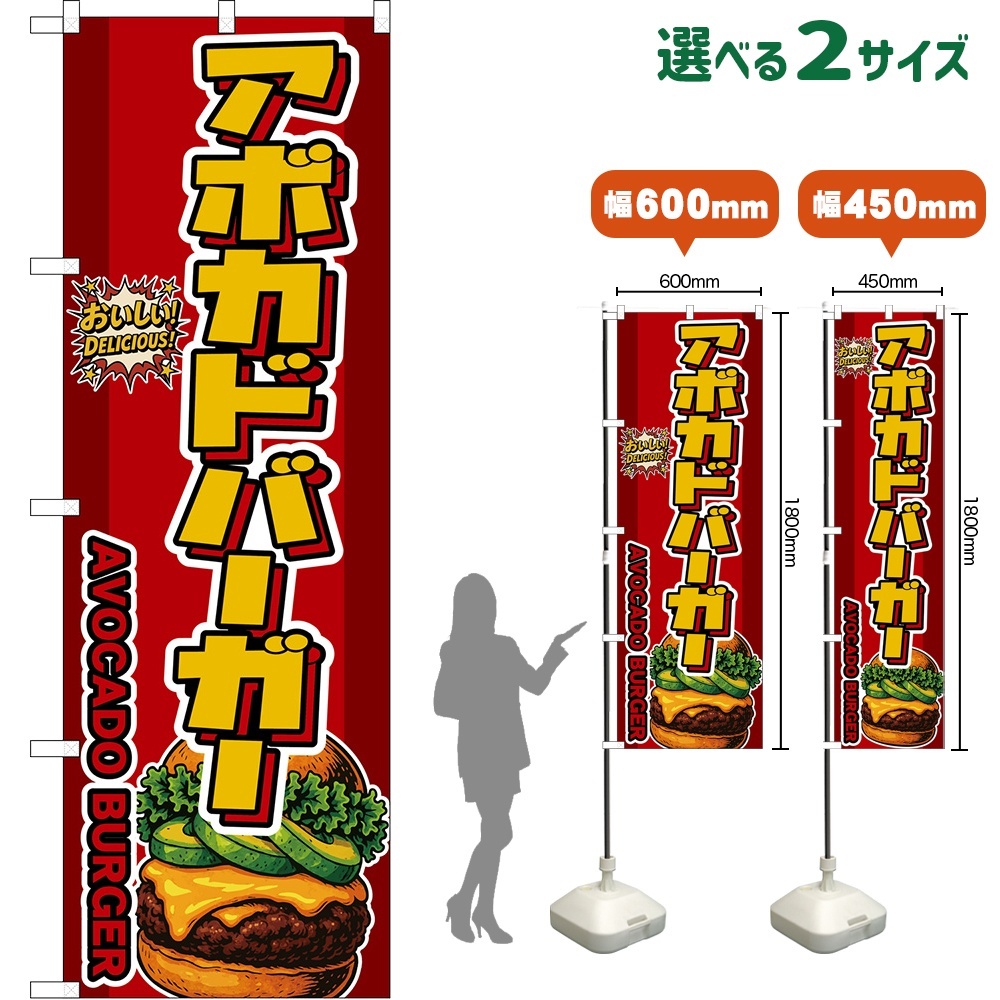のぼり旗 アボカドバーガー AVOCADO BURGER (赤) [DN-0218・DNS-0218]