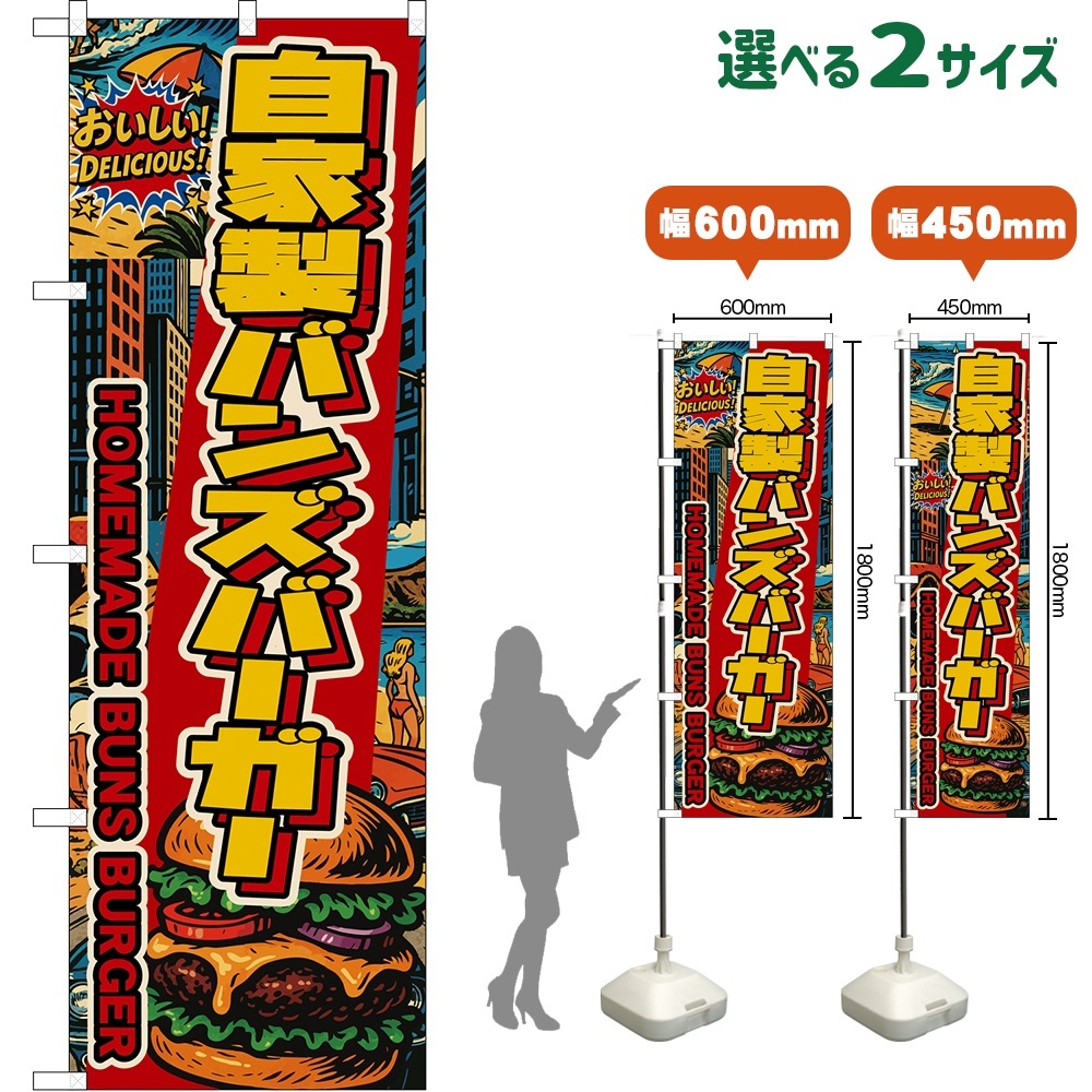 のぼり旗 自家製バンズバーガー HOMEMADE BUNS BURGER (アメリカン)