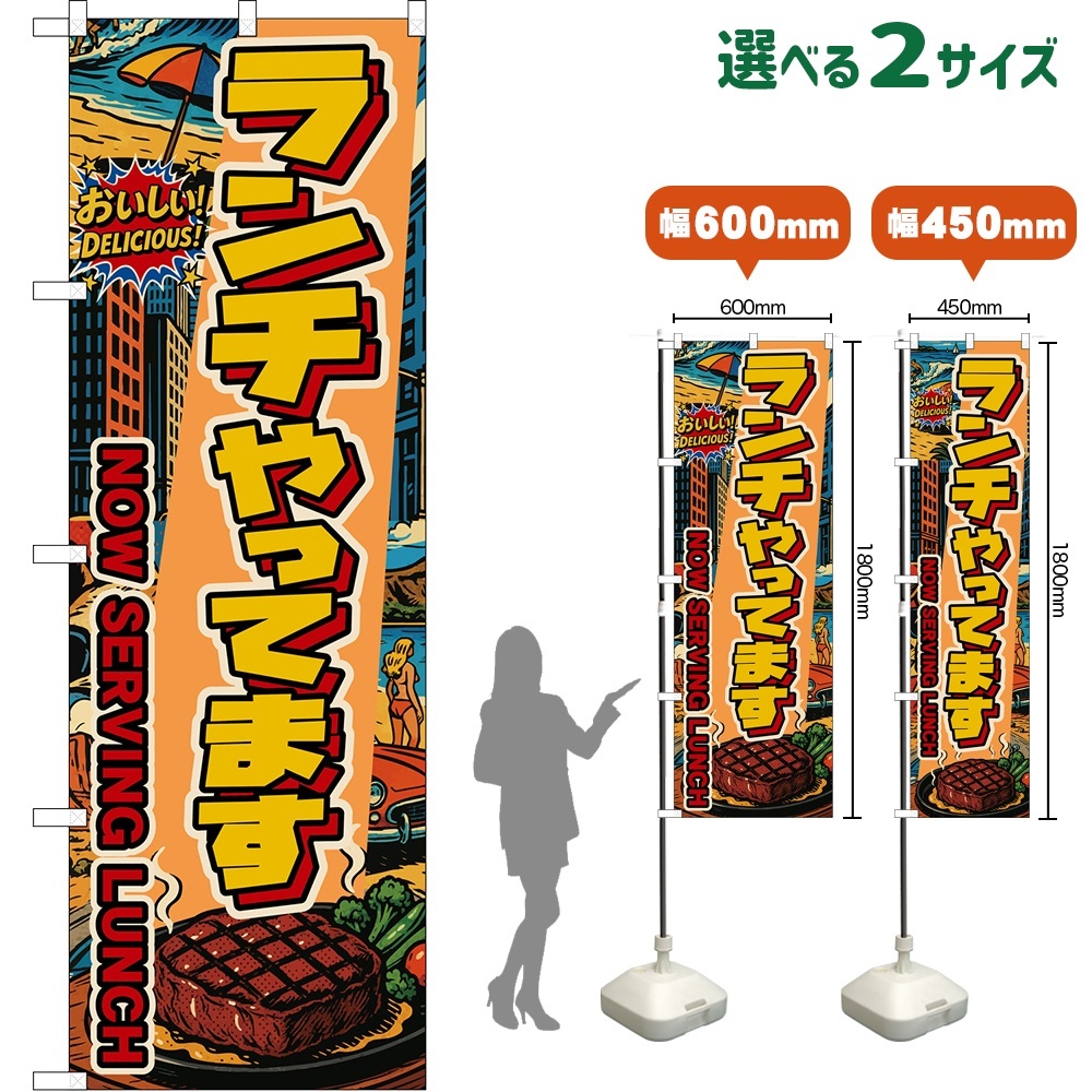 のぼり旗 ランチやってます NOW SERVING LUNCH (ステーキ・アメリカン) [DN-0325・DNS-0325]