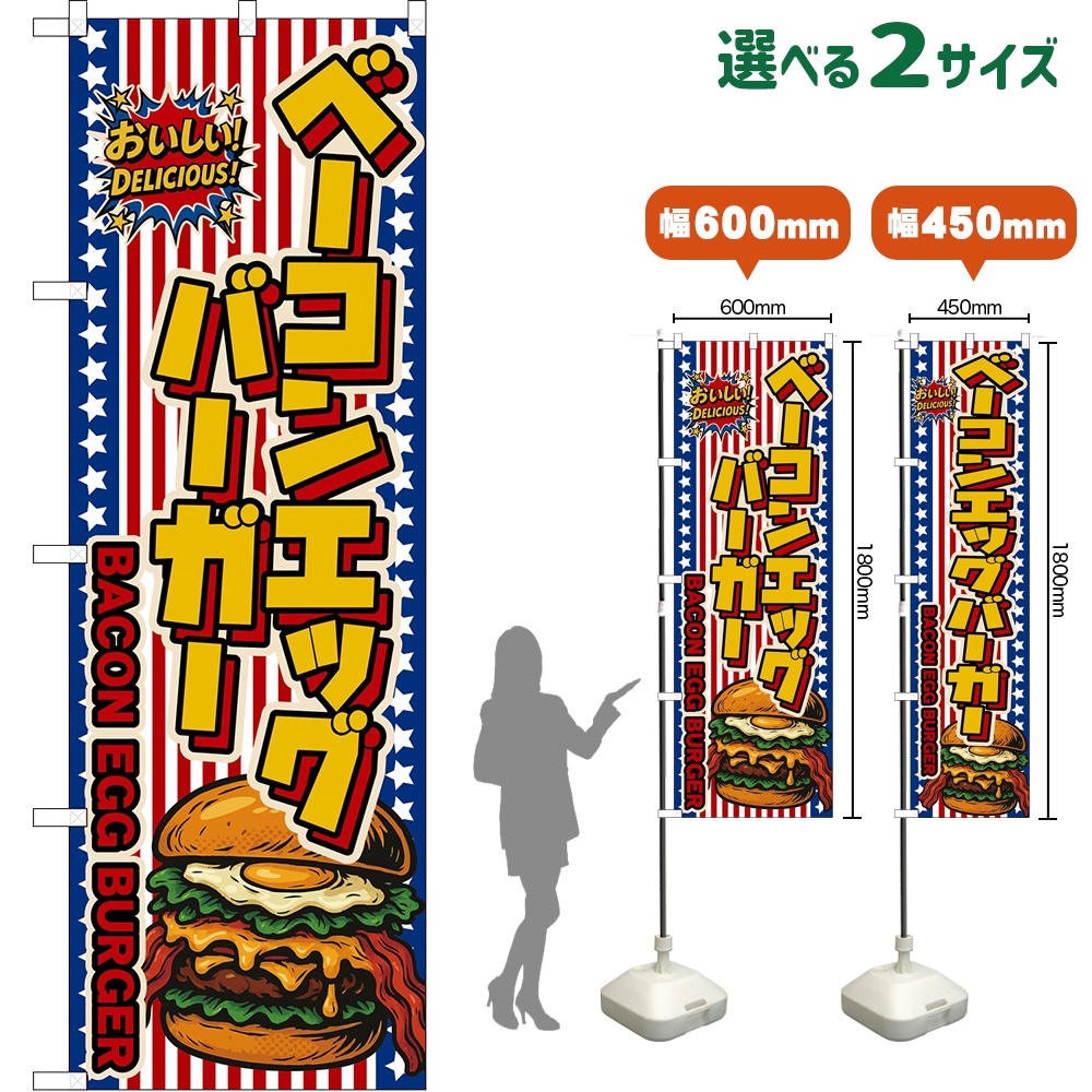 のぼり旗 ベーコンエッグバーガー BACON EGG BURGER (星条旗風)