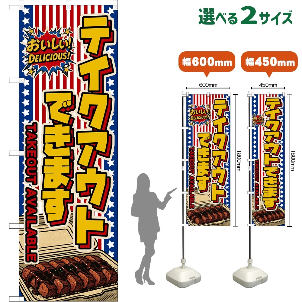 のぼり旗 テイクアウトできます TAKEOUT AVAILABLE (星条旗風)