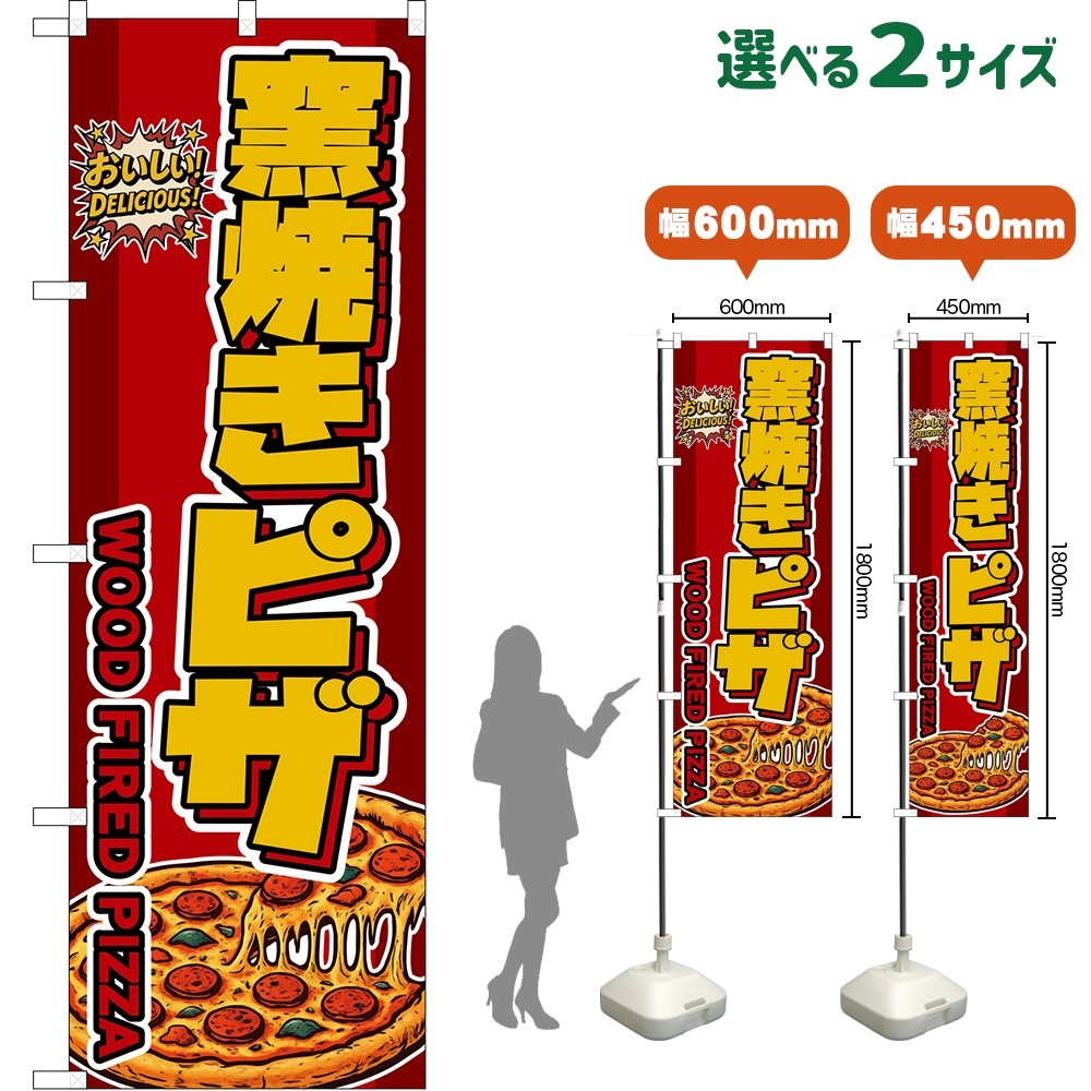 のぼり旗 窯焼きピザ WOOD FIRED PIZZA (赤) [DN-0357・DNS-0357]