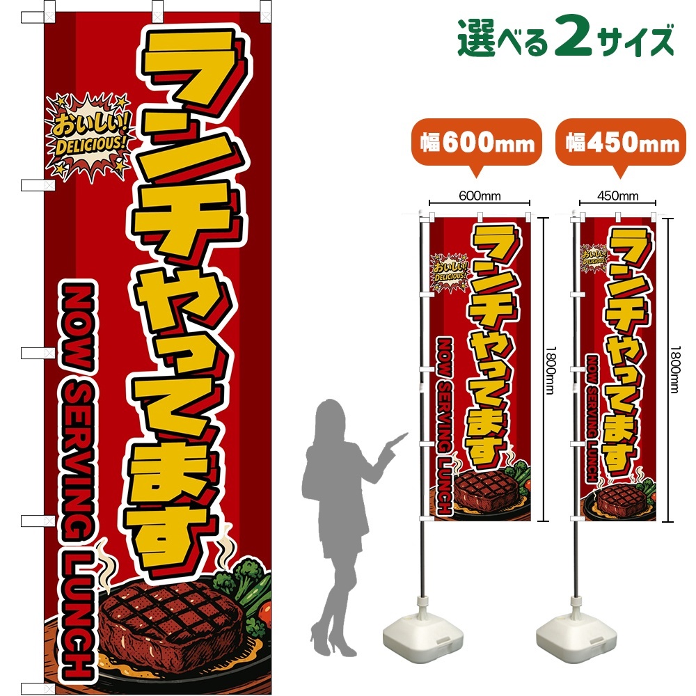 のぼり旗 ランチやってます NOW SERVING LUNCH (ステーキ・赤) [DN-0371・DNS-0371]