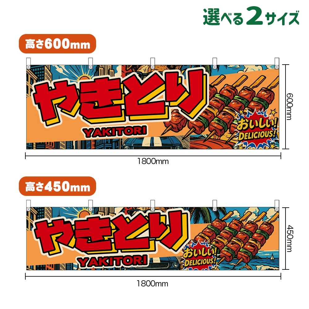 横幕 やきとり YAKITORI (赤文字・アメリカン) [DY-0055・DYH-0055]