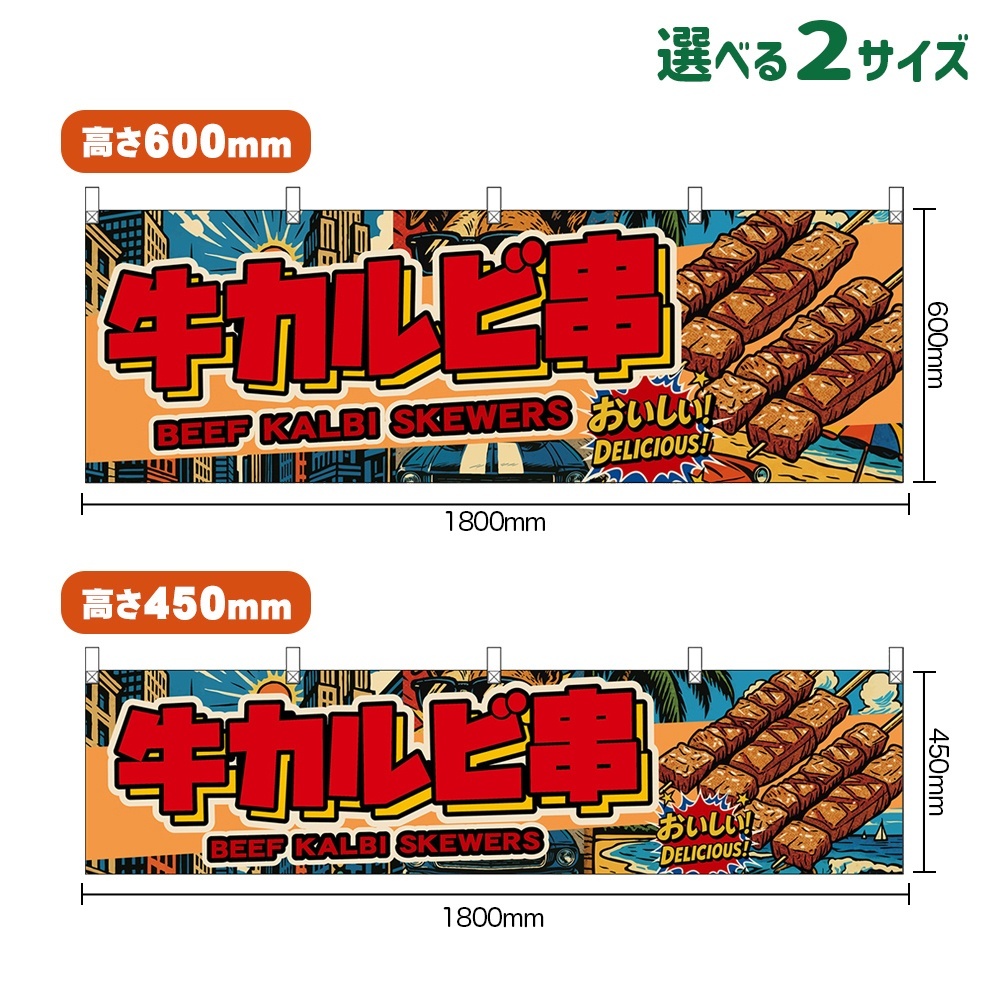 横幕 牛カルビ串 BEEF KALBI SKEWERS (赤文字・アメリカン)