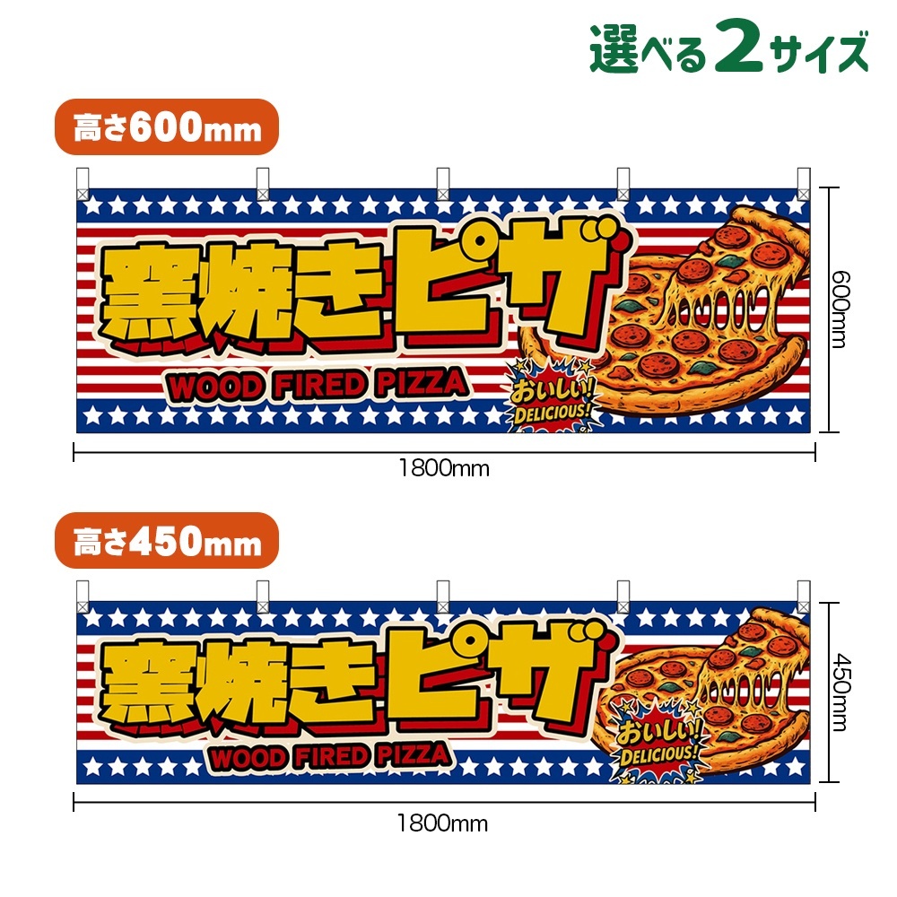 横幕 窯焼きピザ WOOD FIRED PIZZA (星条旗風) [DY-0334・DYH-0334]