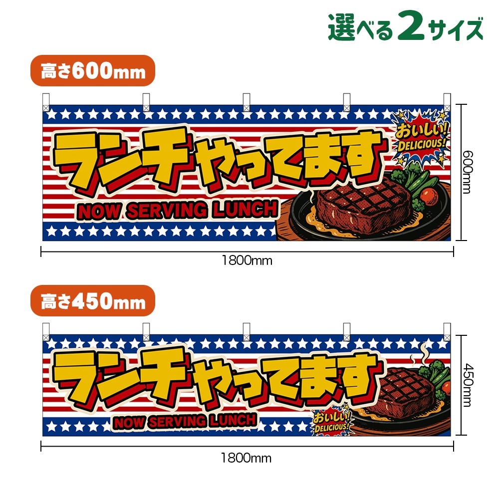 横幕 ランチやってます NOW SERVING LUNCH (ステーキ・星条旗風) [DY-0348・DYH-0348]