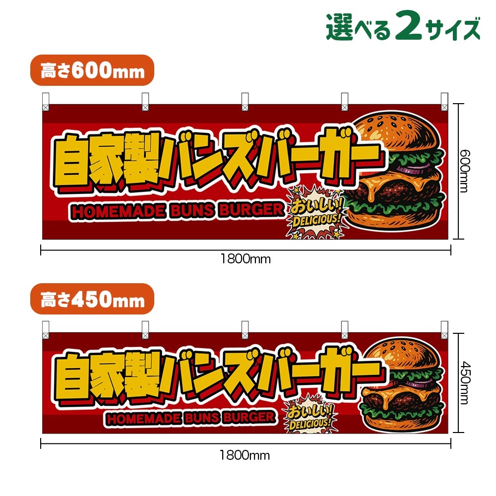 横幕 自家製バンズバーガー HOMEMADE BUNS BURGER (赤) [DY-0353・DYH-0353]