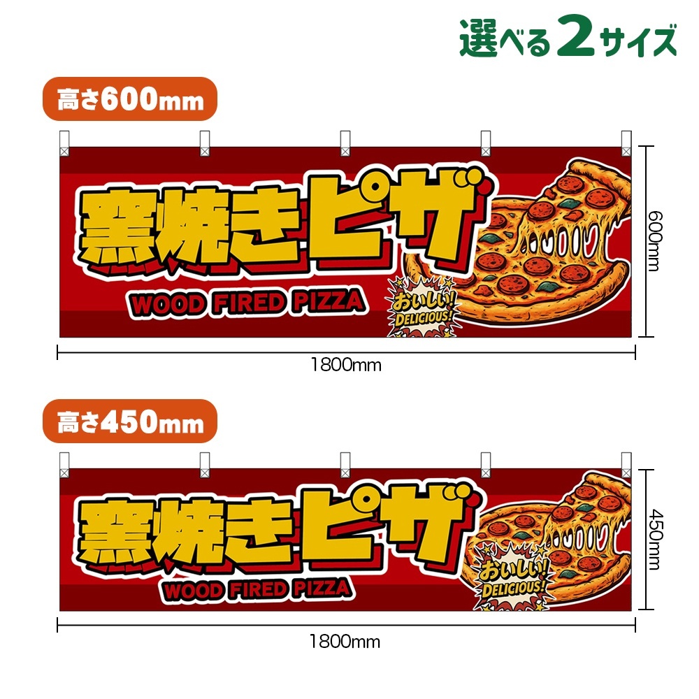 横幕 窯焼きピザ WOOD FIRED PIZZA (赤) [DY-0357・DYH-0357]