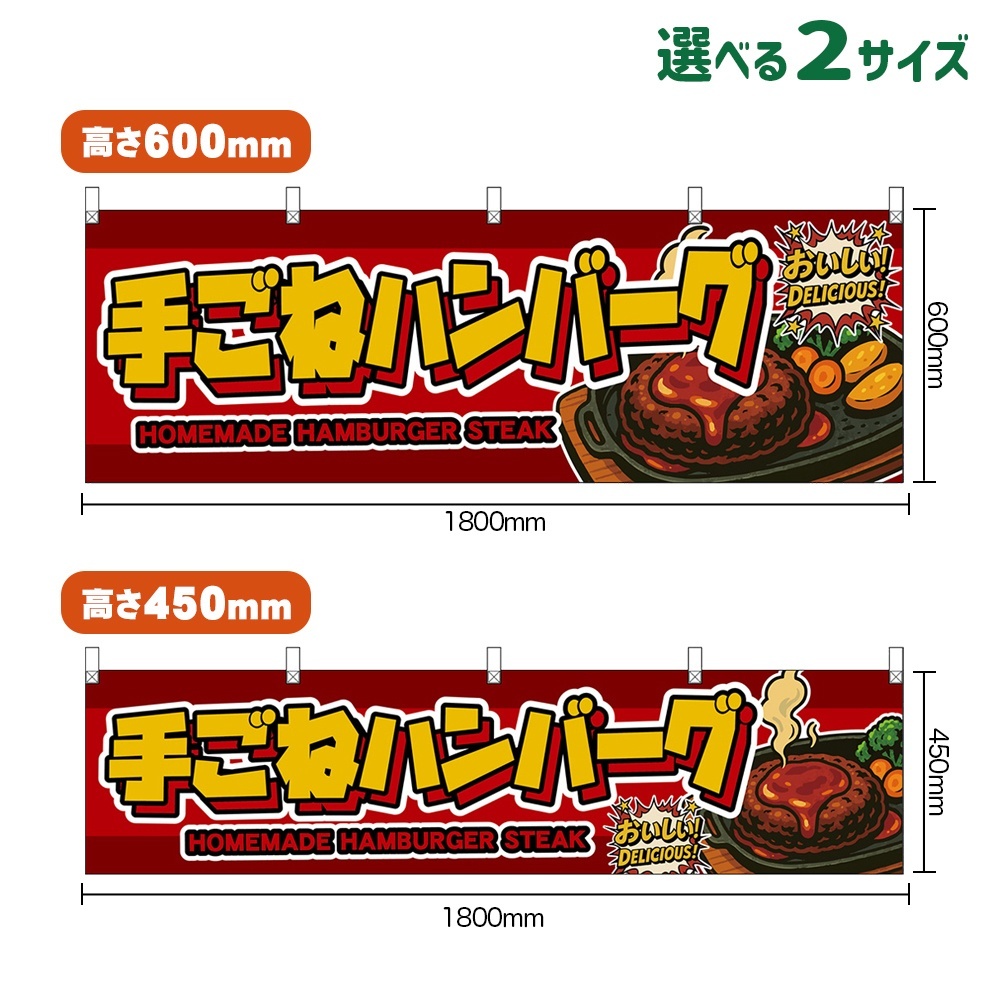横幕 手ごねハンバーグ HOMEMADE HAMBURGER STEAK (赤)