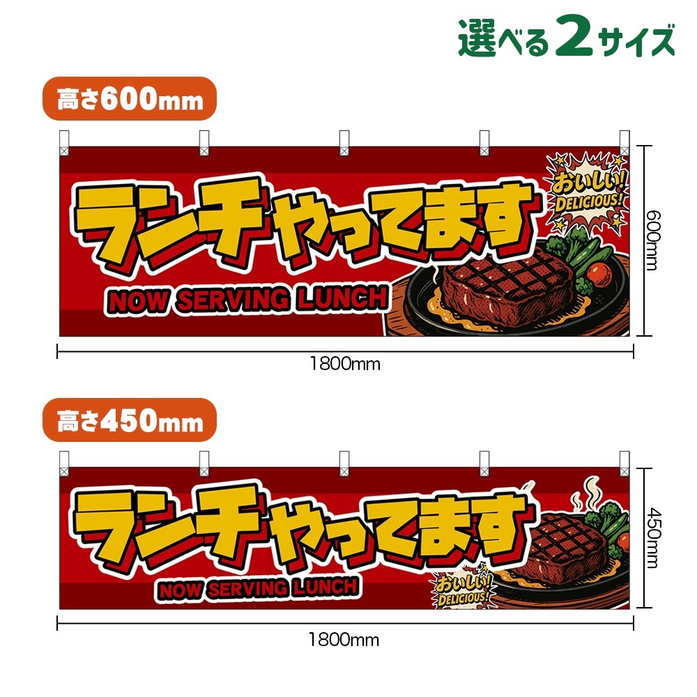 横幕 ランチやってます NOW SERVING LUNCH (ステーキ・赤) [DY-0371・DYH-0371]