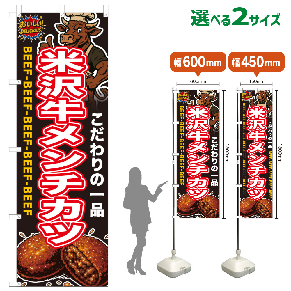 のぼり旗 米沢牛メンチカツ [HD-0199・HDS-0199]