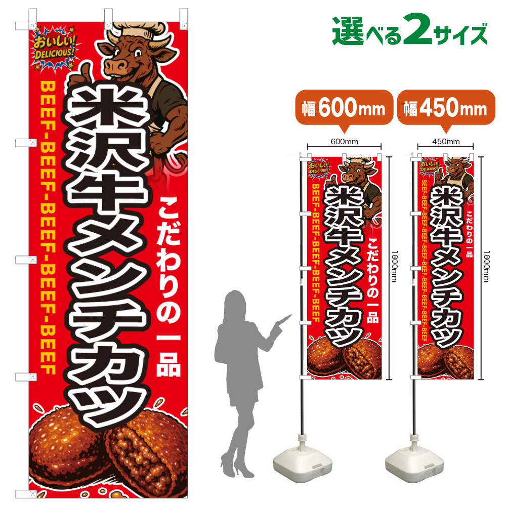 のぼり旗 米沢牛メンチカツ [HD-0200・HDS-0200]