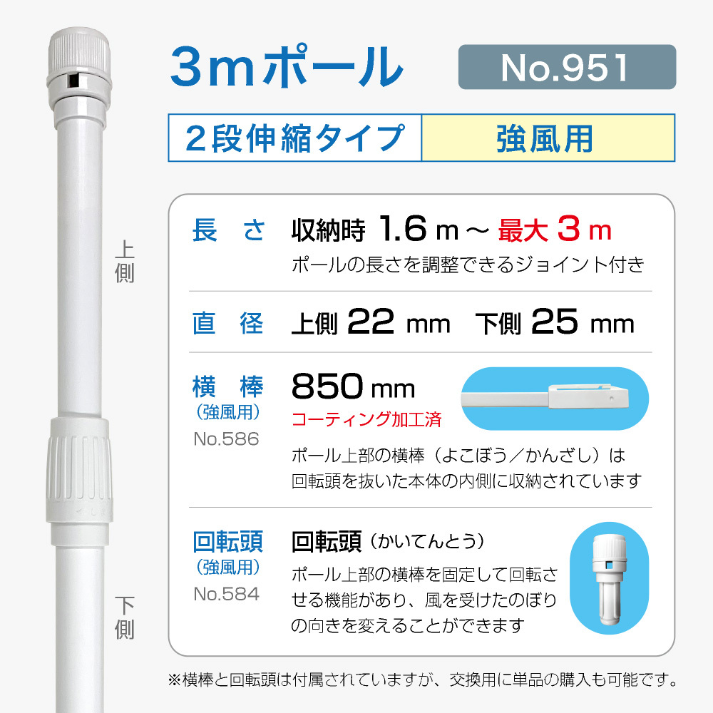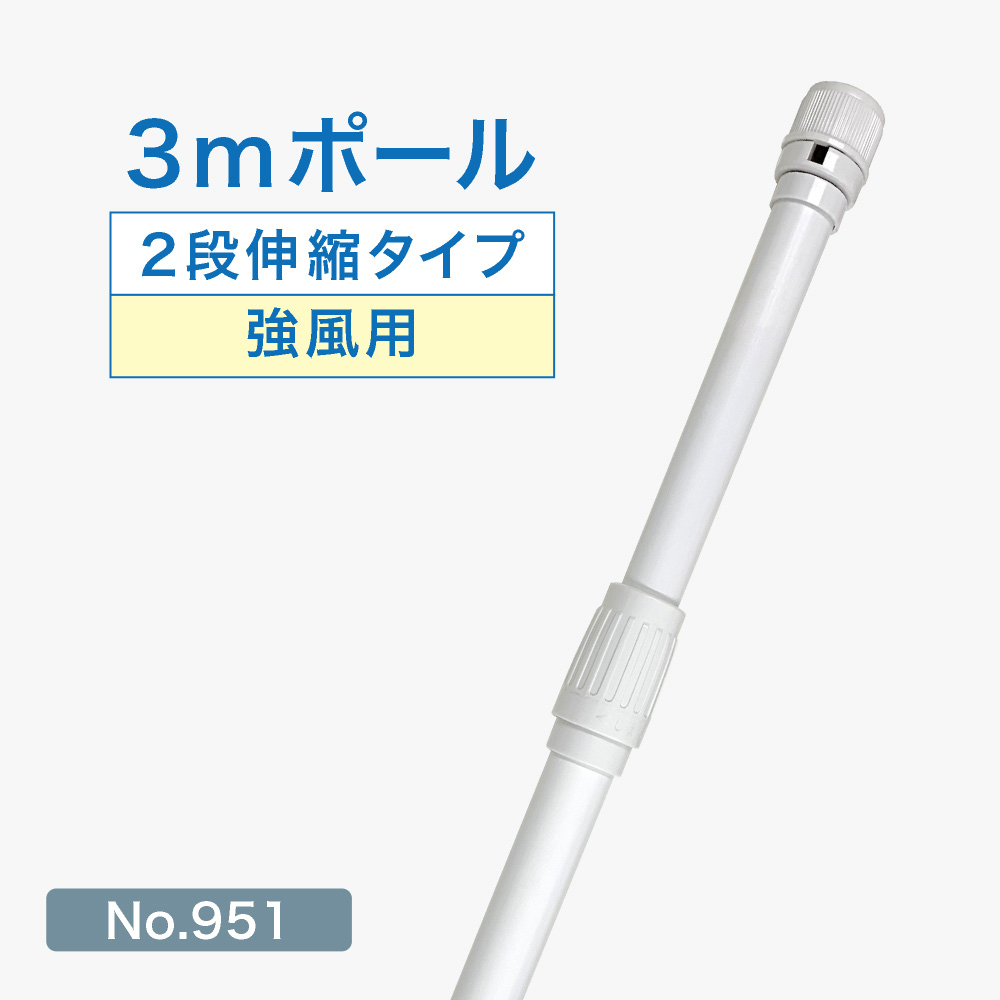 のぼり旗 ポール 3m 強風用 2段伸縮 白色 横棒850mm コーティング No.951 [951]