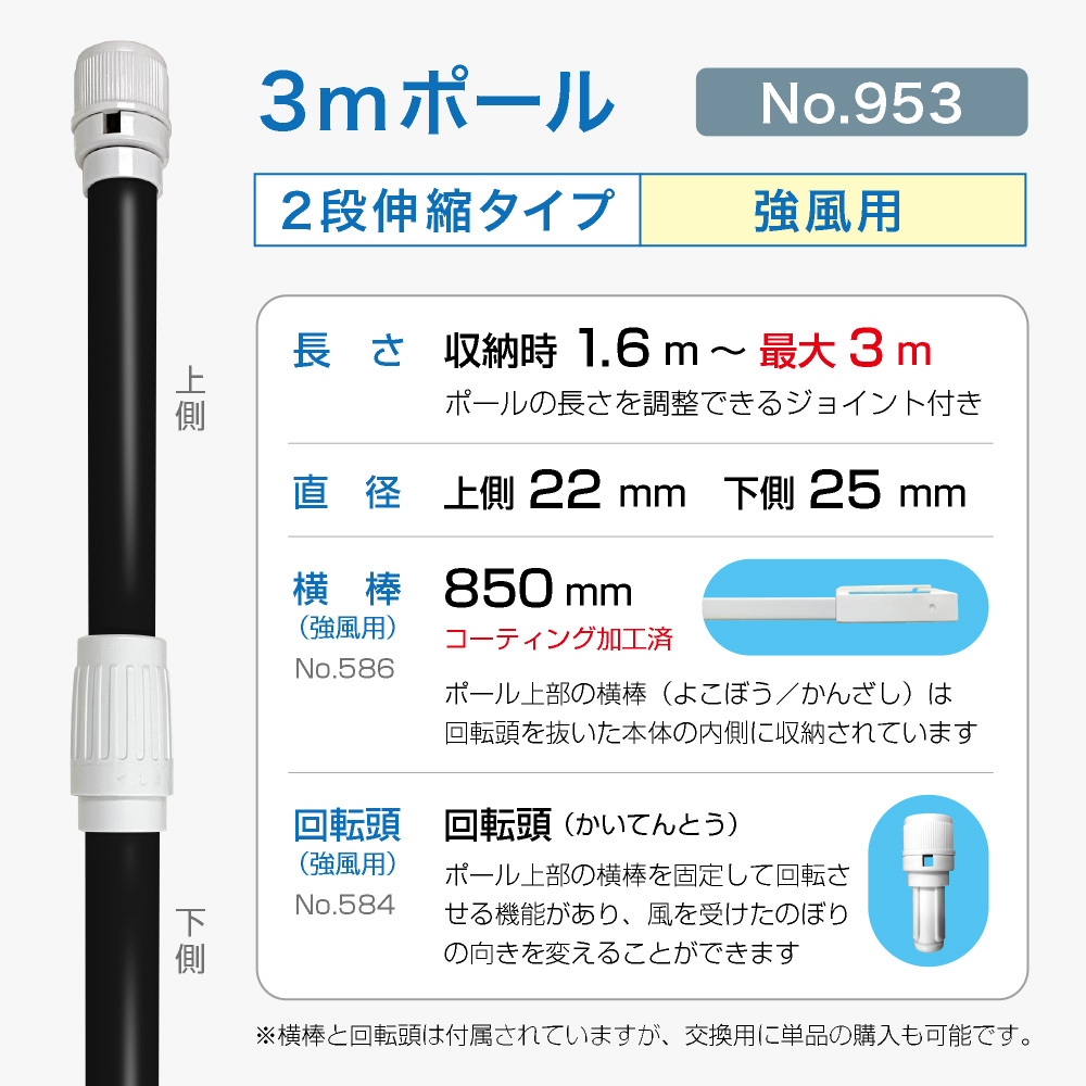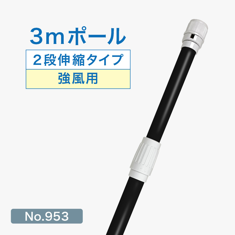のぼり旗 ポール 3m 強風用 2段伸縮 黒色 横棒850mm コーティング No.953 [953]