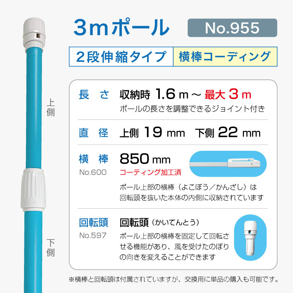 のぼり旗 ポール 3m 2段伸縮 青色 横棒850mm コーティング No.955 [955]