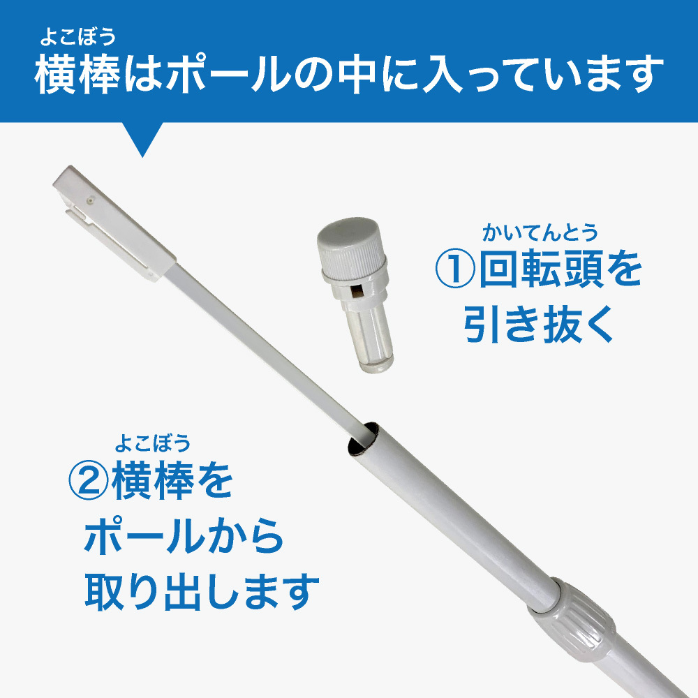 ※横棒はポールのパイプ内部に収納された状態でお届けいたします。