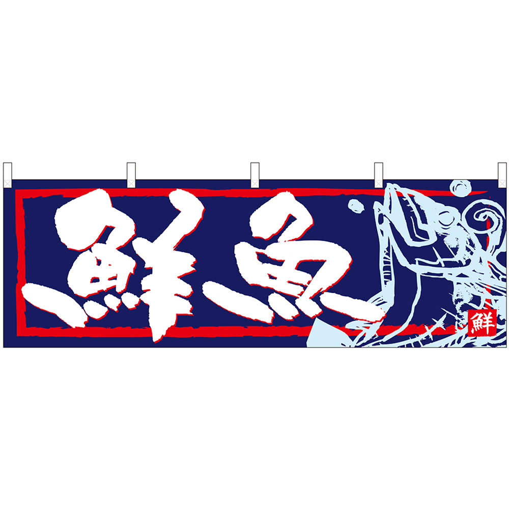 横幕 42991 鮮魚 紺地赤枠 [42991]