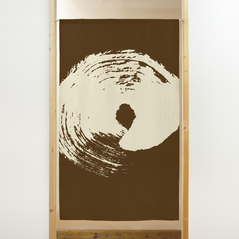 のれん 半間 暖簾 市松柄レースシャンパン 丸 ベージュ 茶 No.41925